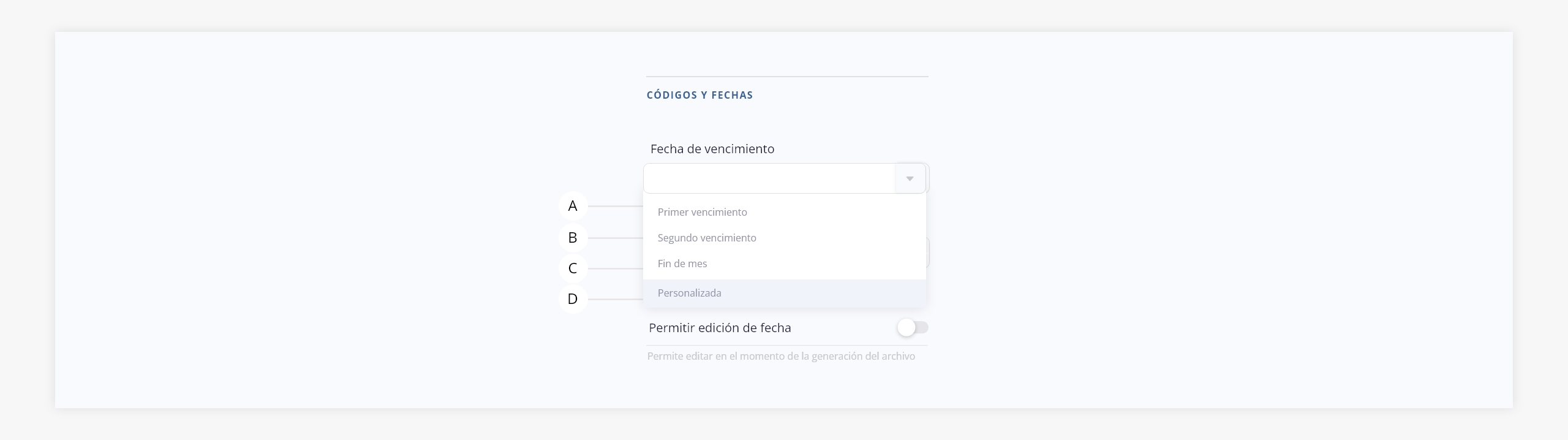 12) Fecha de vencimiento. Definí acá la fecha en la que se realizará el cobro de la deuda presentada a Banco Galicia, podrás seleccionar entre los parámetros: