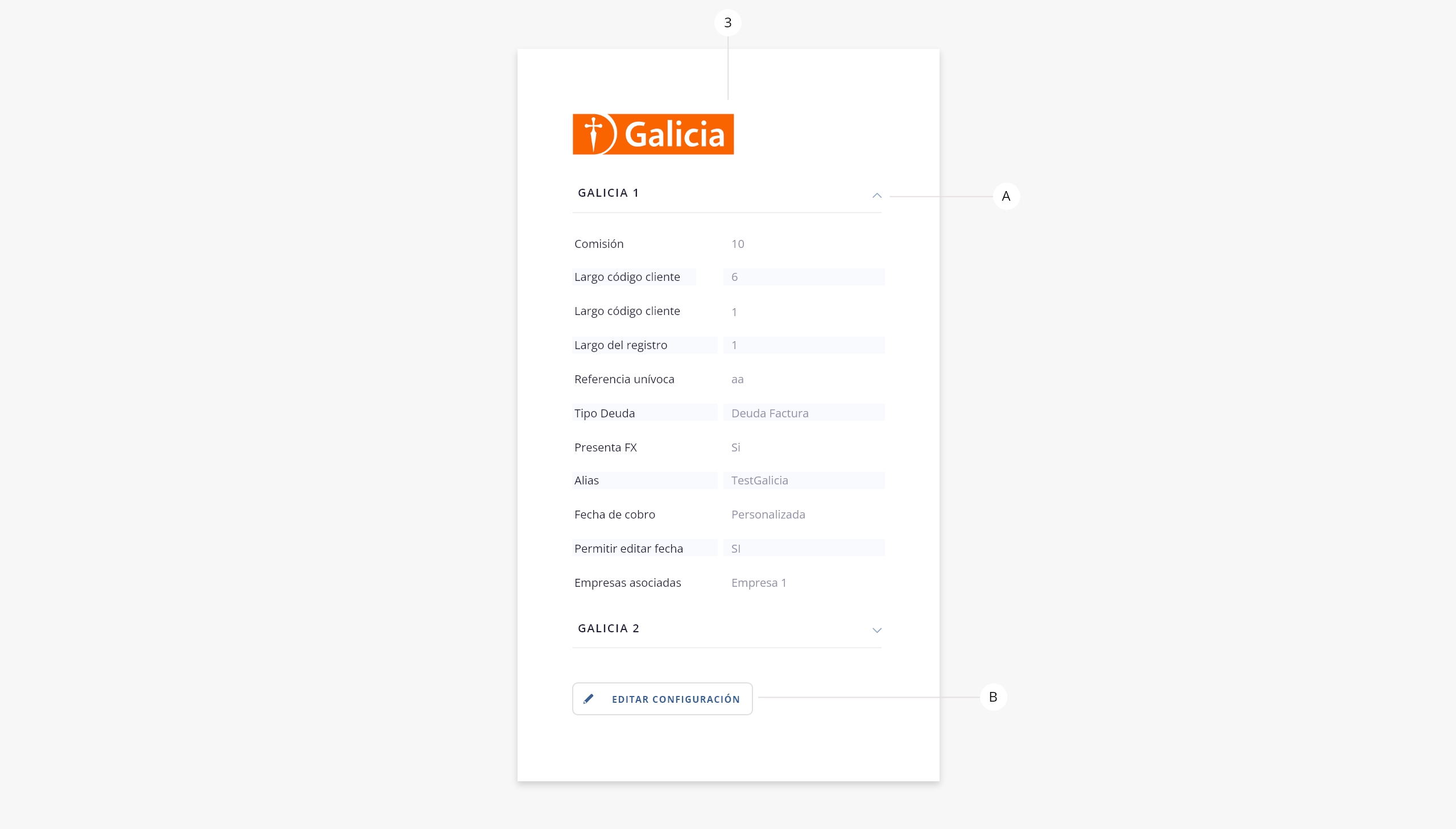 2) GALICIA 2. Tab disponible para configurar la entidad Banco Galicia 2.
