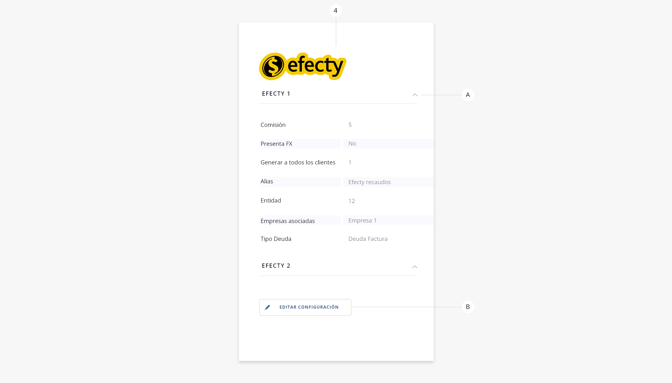 Esto tiene impacto en la configuración de los medios de pago, ya que será factible configurar una cuenta distinta para cada empresa.Ejemplo: el ISP posee dos empresas configuradas en el sistema, al momento de configurar el medio Efecty, visualizará dos tabs, Efecty 1 y Efecty 2. En cada uno de esos tabs, se encontrará el formulario de configuración del medio de pago. También podrá optar por configurar una sola cuenta Efecty y asignarla a todas sus empresas, desestimando el segundo tab.