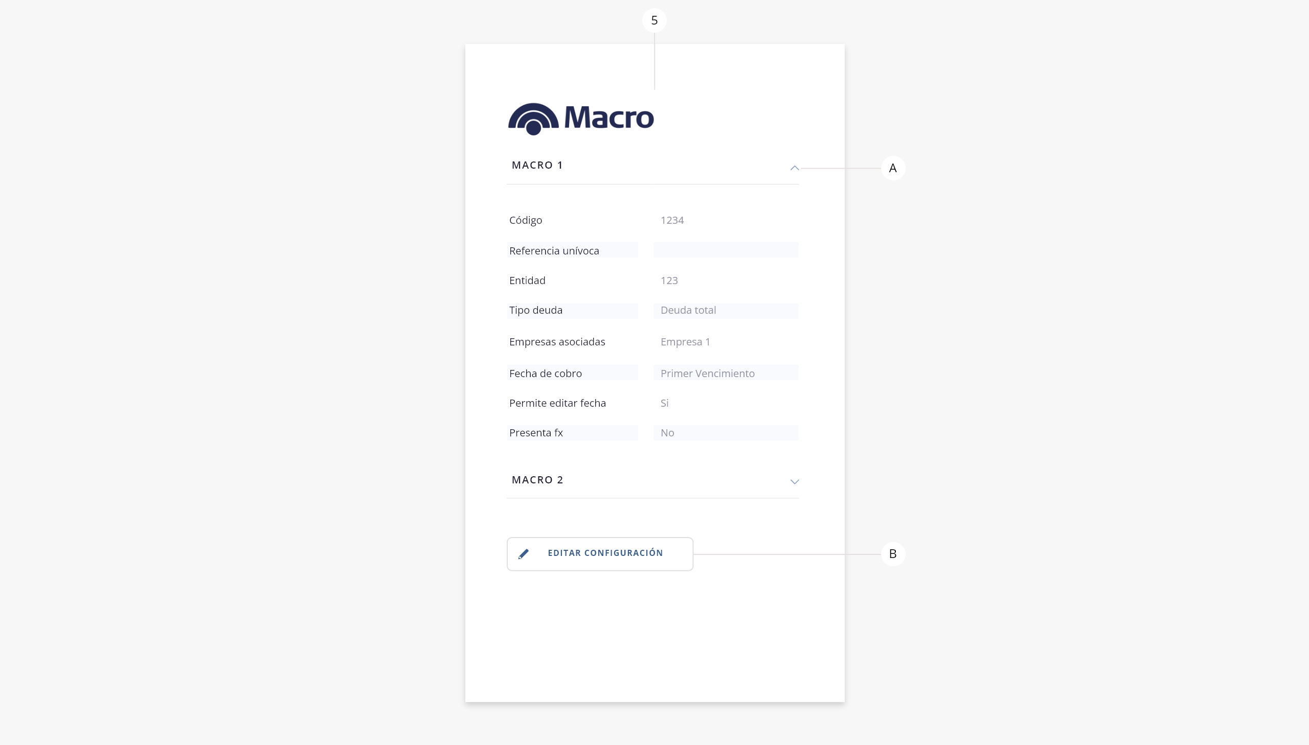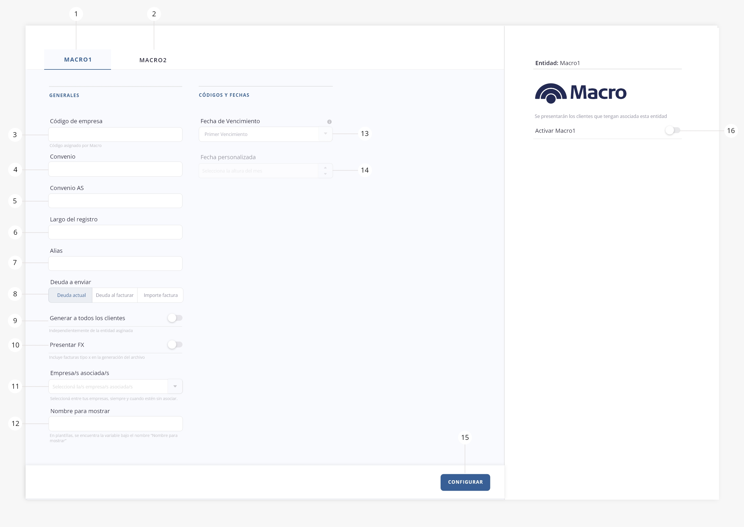2) Macro 2. Tab disponible para configurar la entidad Banco Macro 2.