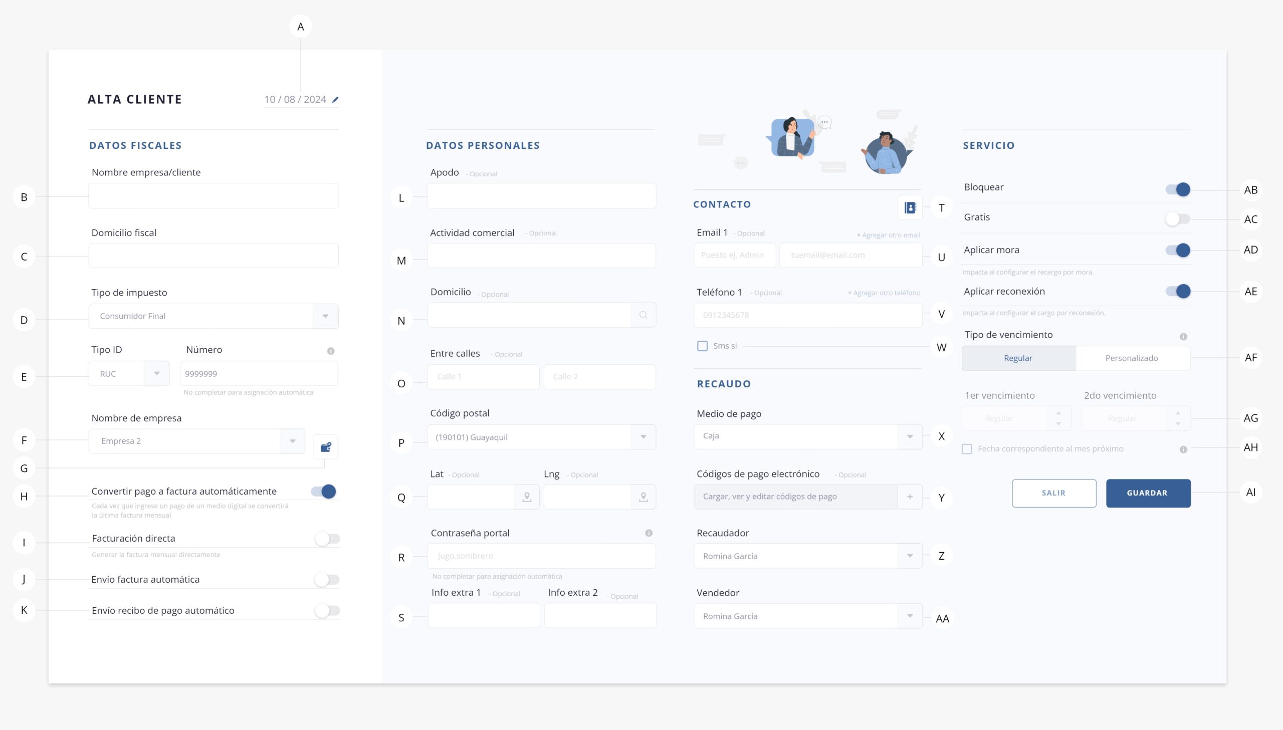 - i. Facturación directa. Si activas este switch, la factura mensual del cliente se emitirá directamente ante el SRI.