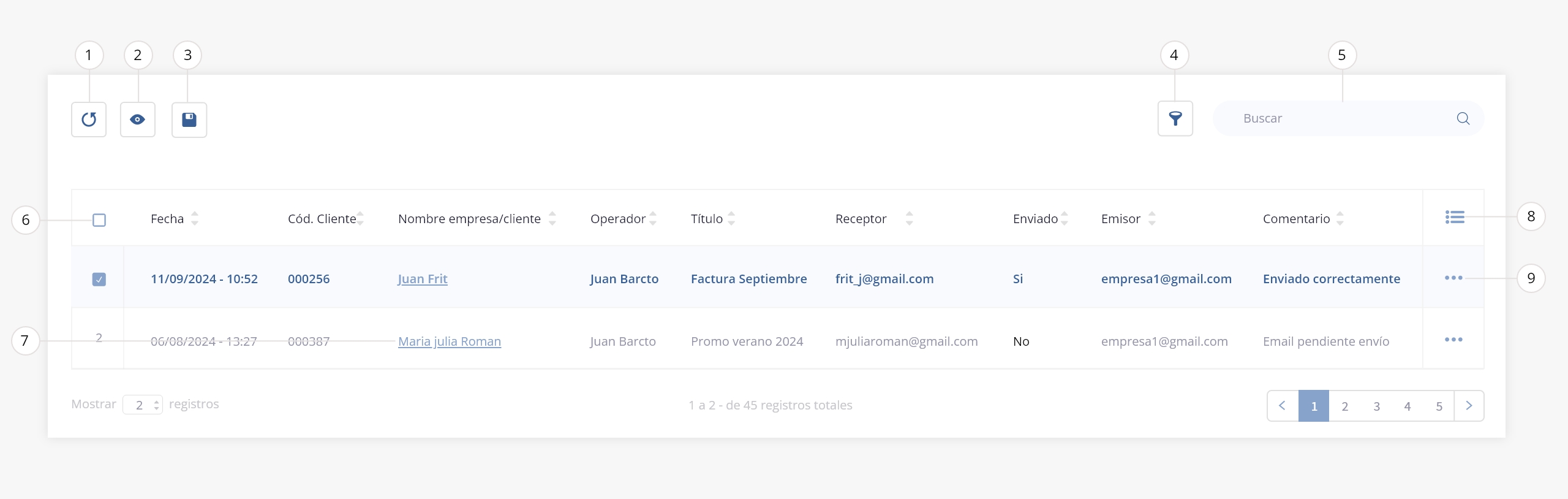 Este apartado te permitirá acceder al historial de correos electrónicos enviados a tus clientes.