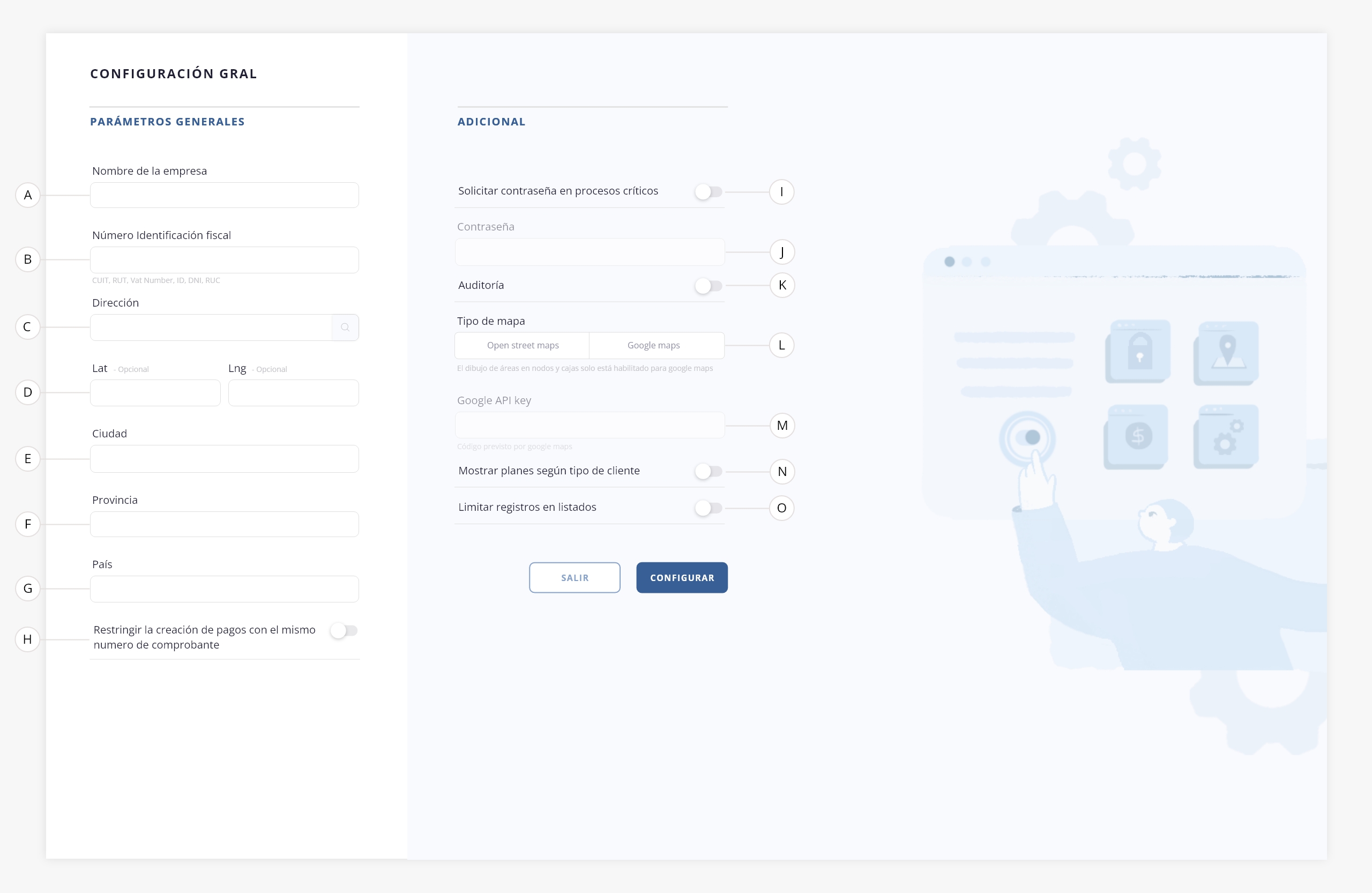 En esta sección encontrarás un formulario de configuración general, donde podrás gestionar algunos datos básicos de tu empresa y configurar algunos específicos del funcionamiento.