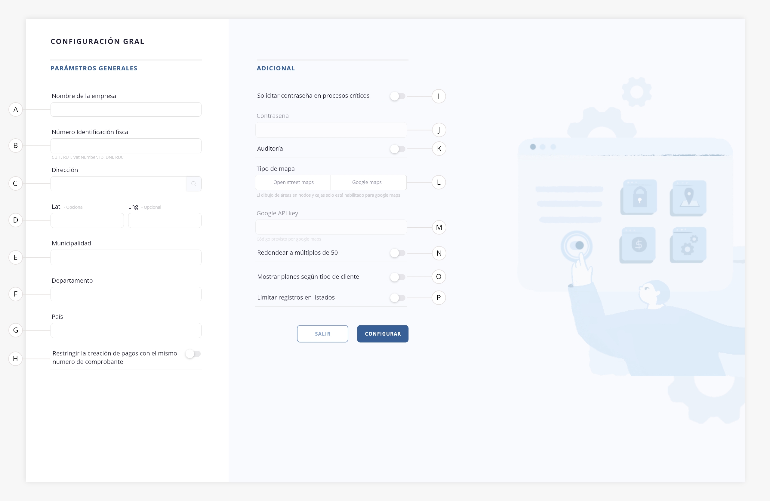 En esta sección encontrarás un formulario de configuración general donde podrás gestionar algunos datos básicos de tu empresa y configurar algunos específicos del funcionamiento. A continuación te dejamos una imagen del formulario:
