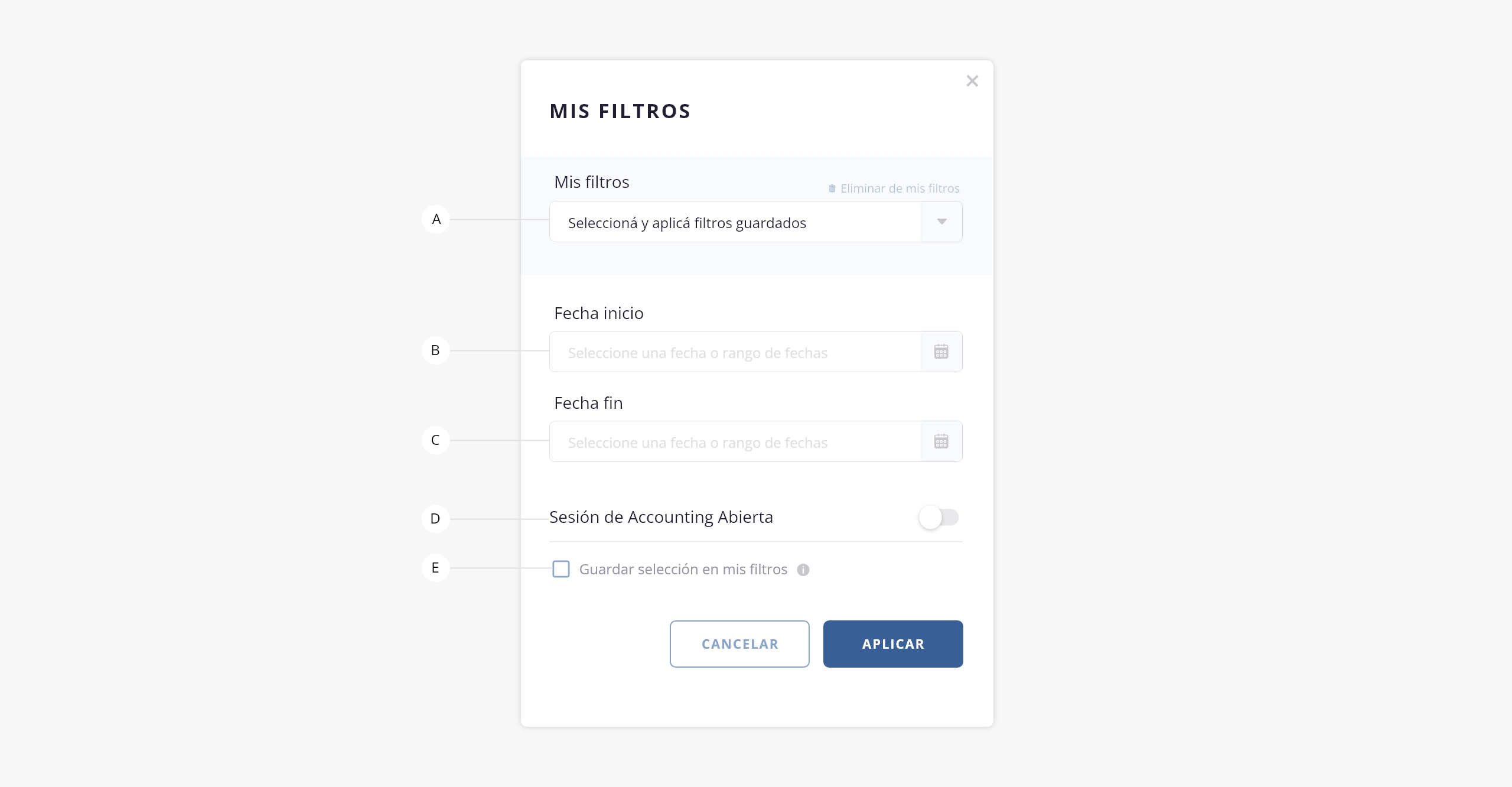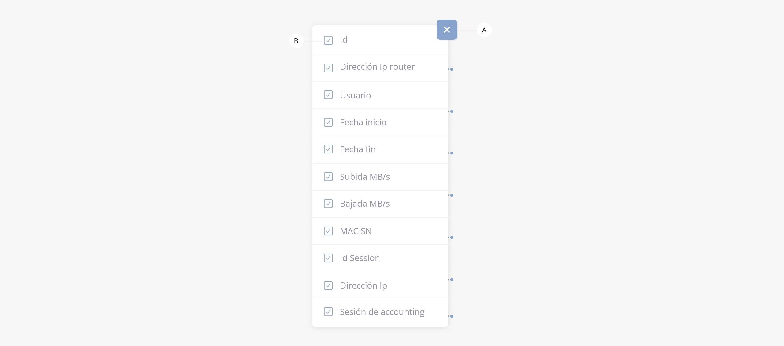 - d. Sesión de Accounting abierta. Al activar este switch, se filtrarán las sesiones en las que el usuario se encuentra activo.