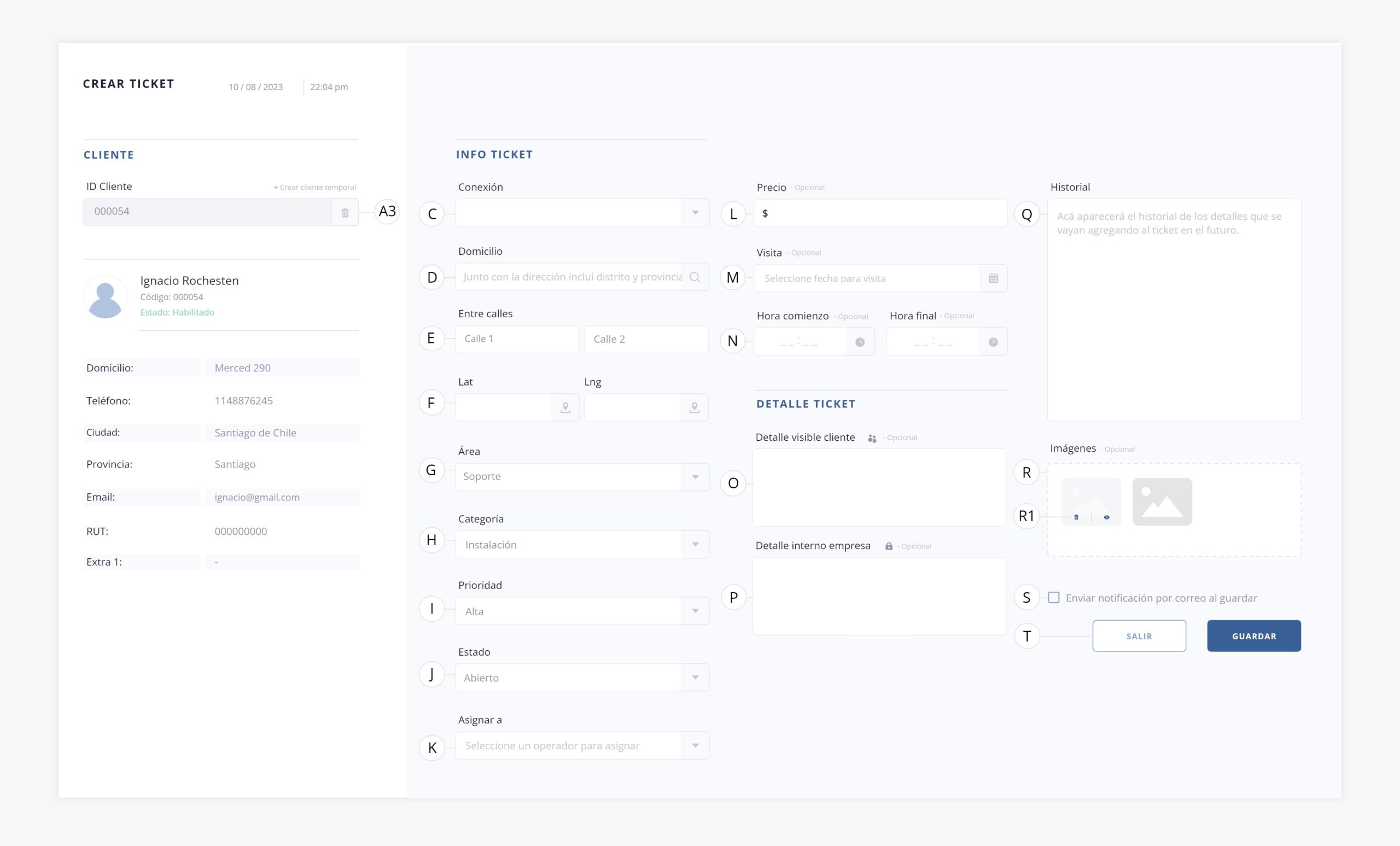 - b. Cargar un ticket para un potencial cliente (lo que denominamos cliente temporal).