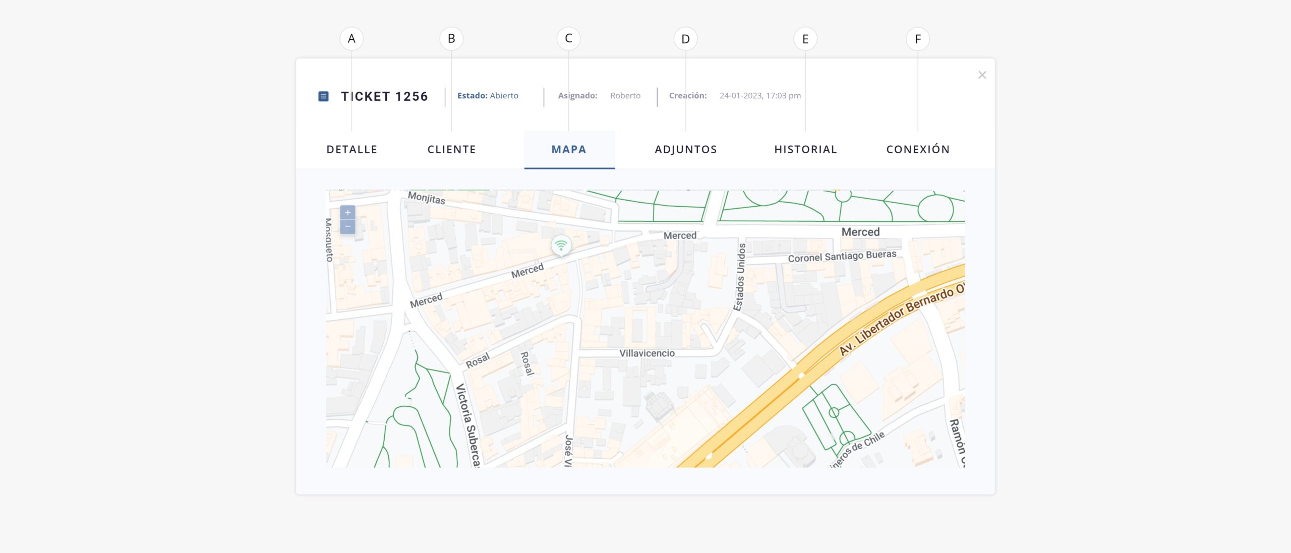 - c. Mapa. Nos permitirá la visualización de la locación donde esta asignado el ticket.