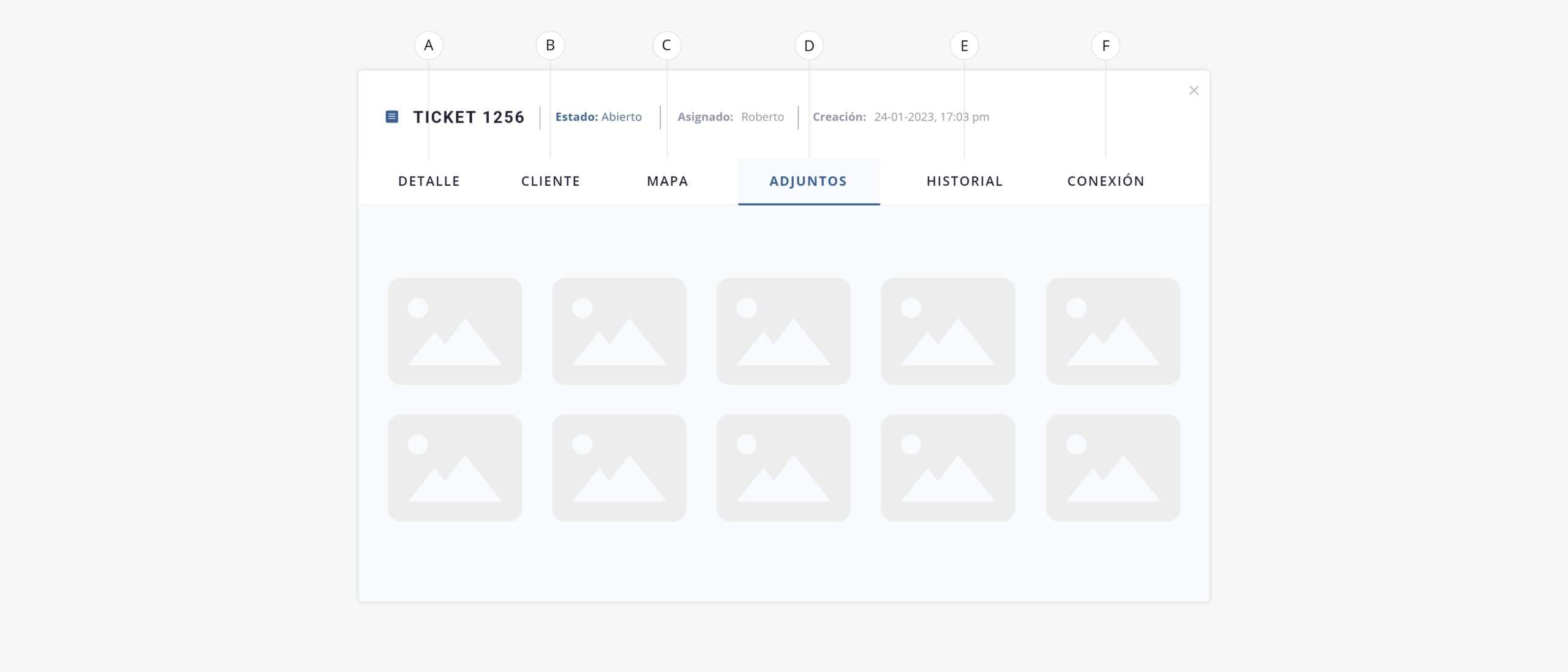 - d. Adjuntos. En caso que el ticket tenga archivos adjuntos, podrás visualizar los mismos aquí.