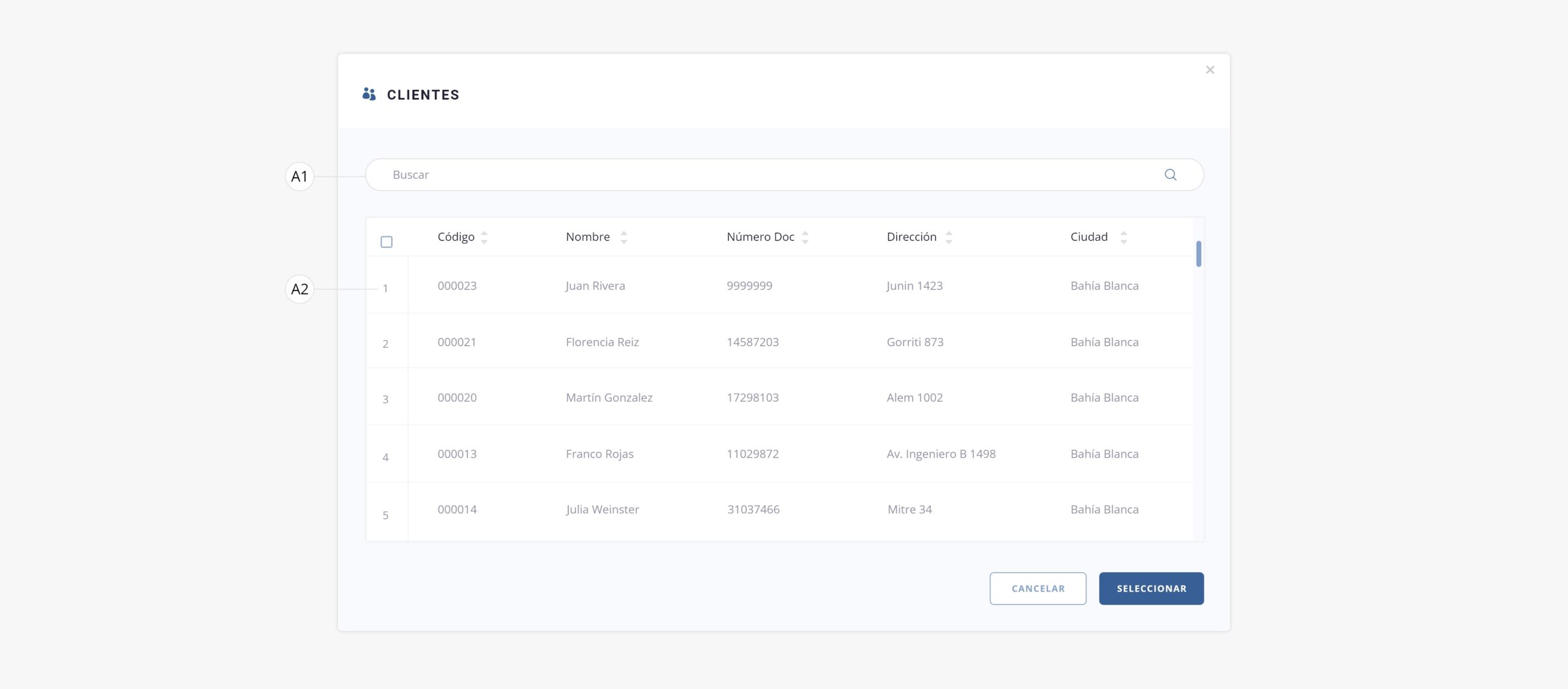 a2) Casilla de selección. Se utiliza para seleccionar el cliente en cuestión.