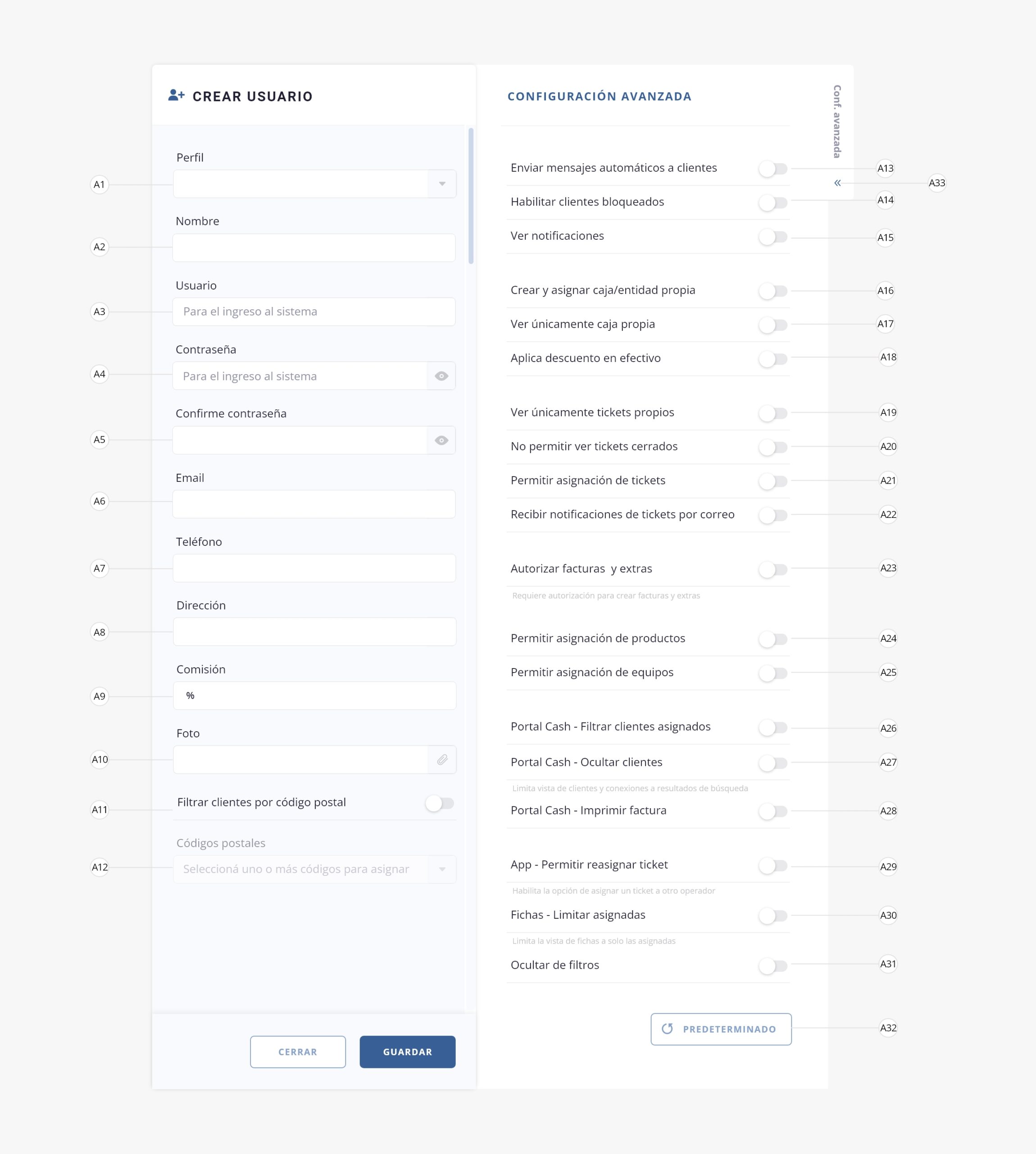 Cada uno de los operadores a los que les quieras dar acceso al sistema, deberá tener un usuario creado.