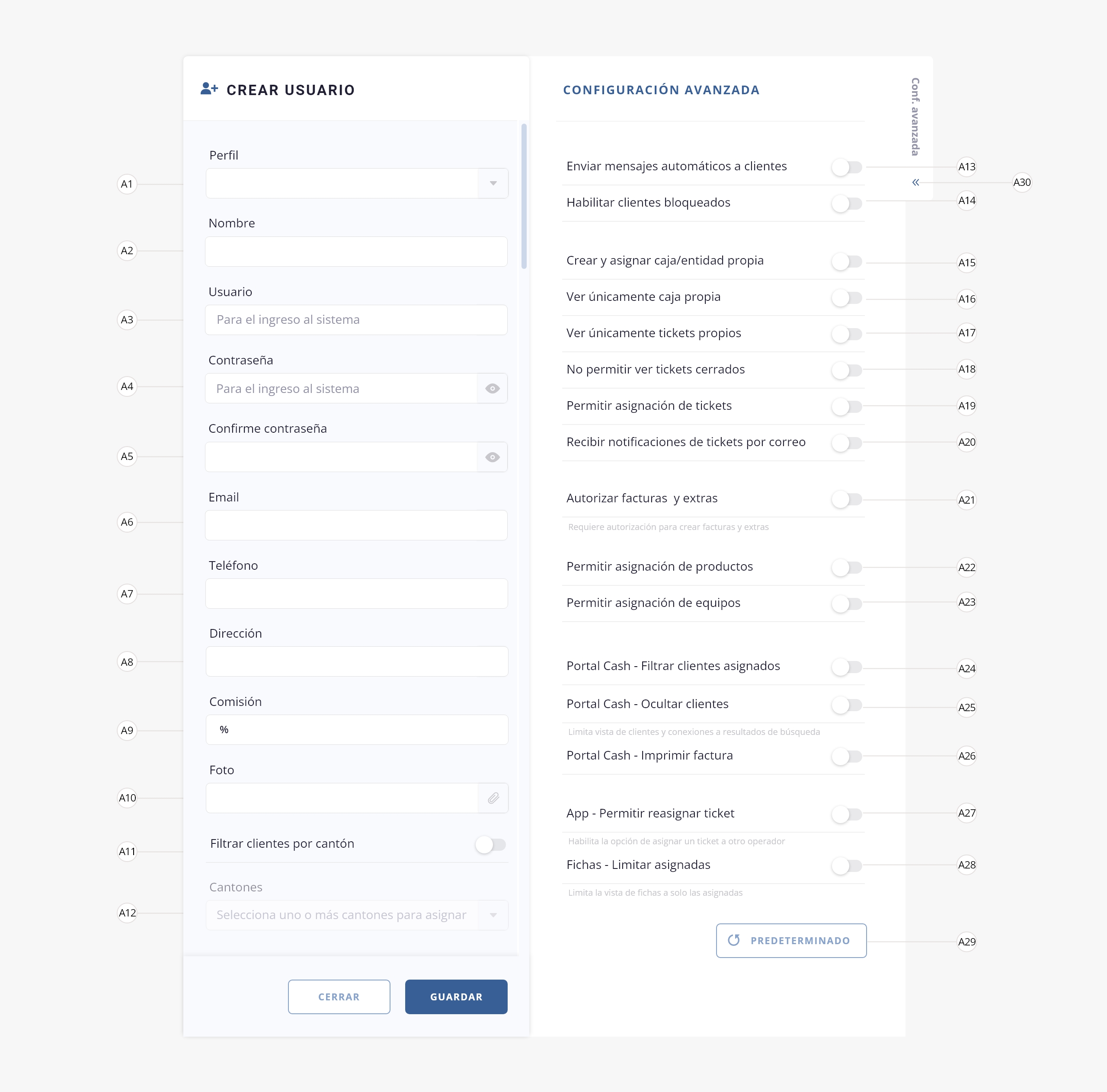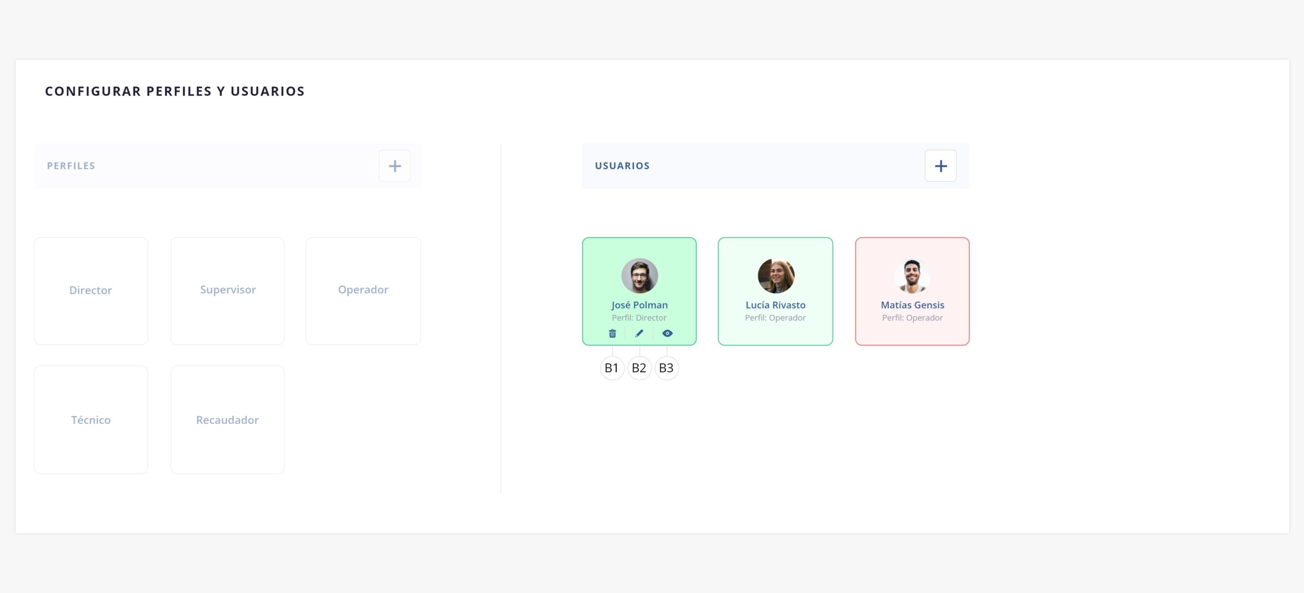 Cada uno de los operadores a los que les quieras dar acceso al sistema, deberá tener un usuario creado.